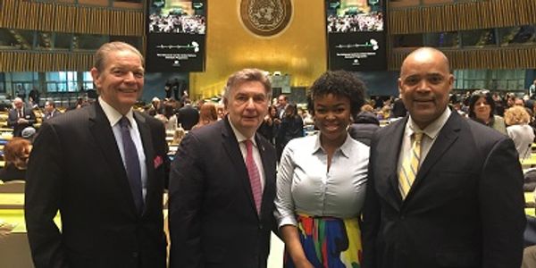 New York (January 27, 2020) - At United Nations Headquarters, Don Victor Mooney who holds dual nationality with Equatorial Guinea, joined Isabel Avomo Sima, representing Ambassador Anatolio Ndong Mba, its Permanent Ambassador, with Rev. Dr. William Shillady and Rabbi Joe Potasnik.